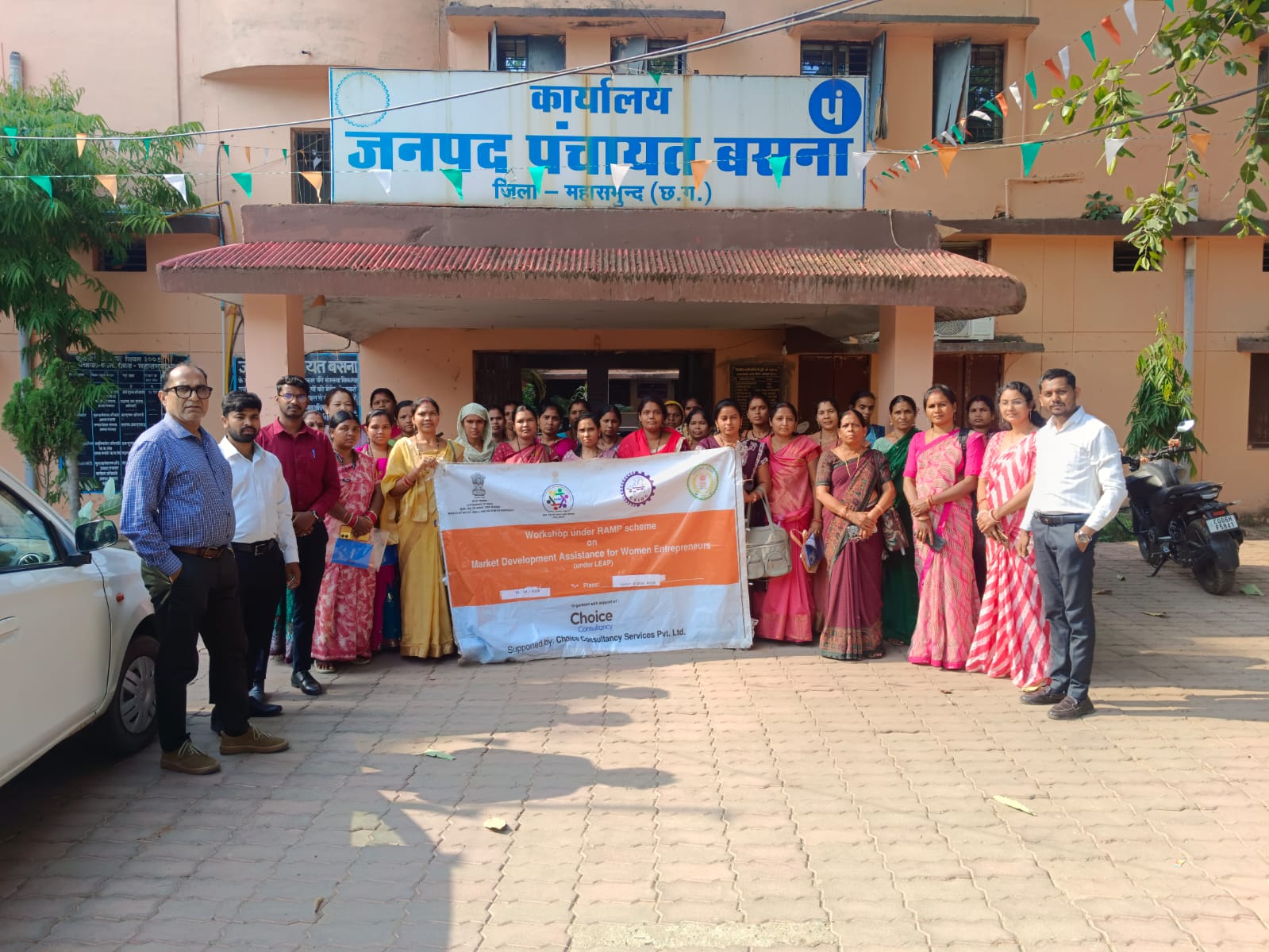 केंद्र सरकार की RAMP योजना के अन्तर्गत CSIDC छत्तीसगढ़ के मार्गदर्शन में चाॅइस कंसल्टेंसी सर्विसेज प्राइवेट लिमिटेड द्वारा महिला उद्यमिता को बढ़ावा देने, उन्हें बाजार से जोड़ने, राज्य एवं राष्ट्रीय स्तर पर बाजार विस्तार के अवसर प्रदान करने के उददेश्य से आज जनपद पंचायत बसना के सभाकक्ष में मार्केट डेवलपमेंट असिस्टेंस विषय पर एक दिवसीय कार्यशाला का आयोजन किया गया।