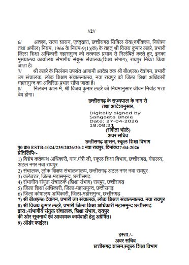महासमुंद DEO विजय लहरे का निलंबन एक संदेश है कि धार्मिक संवेदनशीलता, न्यायालय के आदेश और