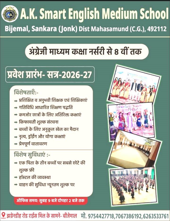 महासमुंद जिले के शिक्षा विभाग और जिला प्रशासन के निर्देशों के बावजूद पिथौरा विकासखंड के बिजेमाल क्षेत्र में एक निजी स्कूल के संचालन को लेकर गंभीर स्थिति सामने आई है। मामला “ए.के. स्मार्ट इंग्लिश मीडियम स्कूल” से जुड़ा है, जिसे जिला कलेक्टर विनय लंगेह द्वारा बिना मान्यता प्राप्त होने के कारण तत्काल प्रभाव से बंद करने के आदेश दिए गए थे। इसके बावजूद स्कूल के संचालन और प्रचार-प्रसार को लेकर नए खुलासे हो रहे हैं, जिससे प्रशासनिक व्यवस्था की प्रभावशीलता पर सवाल उठने लगे हैं।