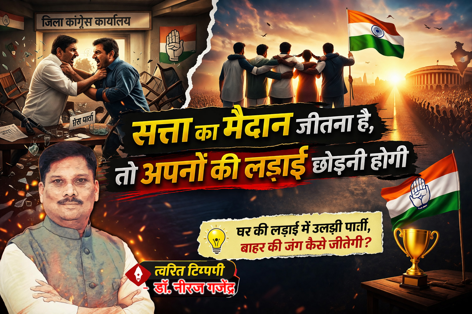 कांग्रेस दफ्तर में मारपीट : सत्ता का मैदान जीतने छोड़नी होगी अपनों की लड़ाई