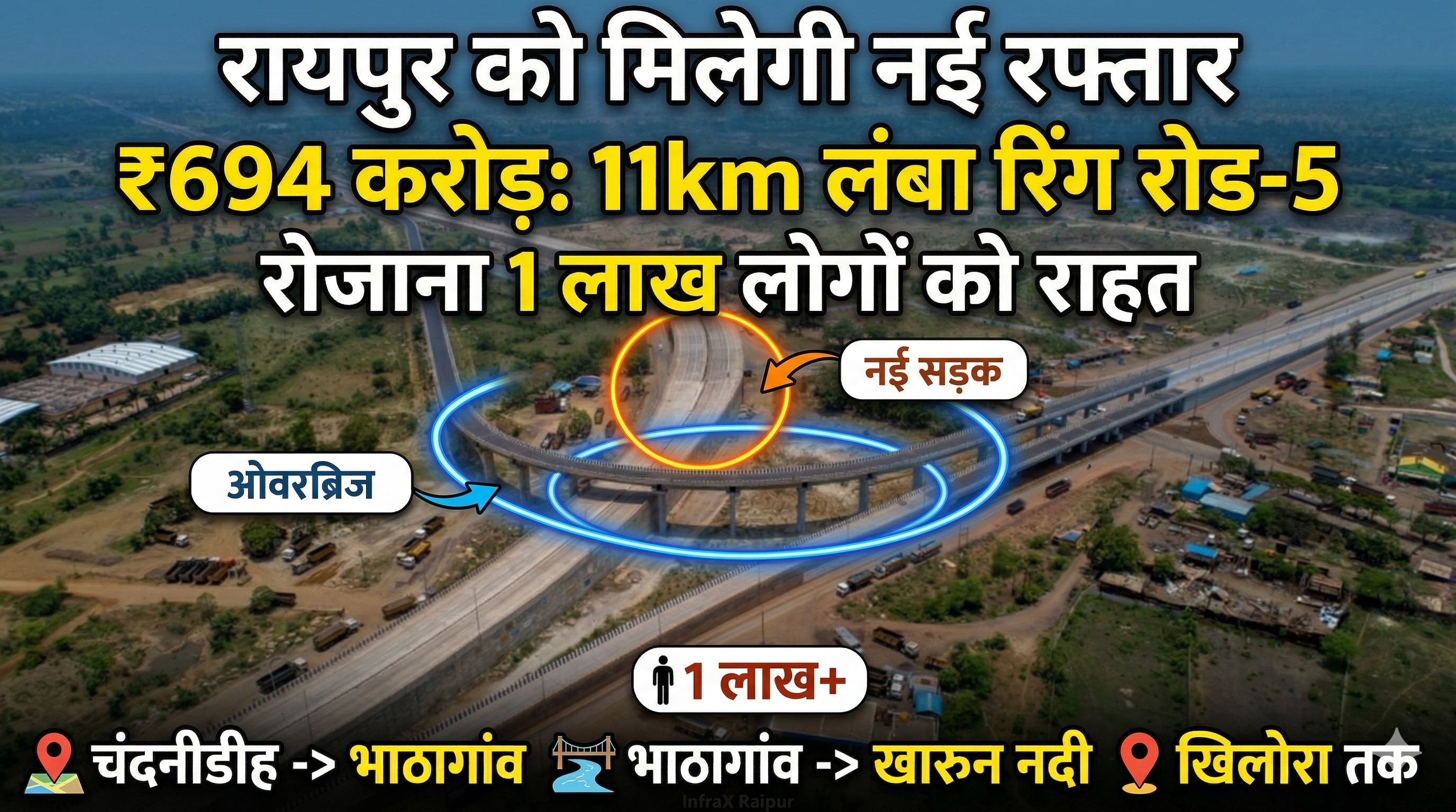 रायपुर को मिलेगी नई रफ्तार : 694 करोड़ से बनेगा 11 किमी लंबा रिंग रोड-5, रोजाना 1 लाख लोगों को राहत