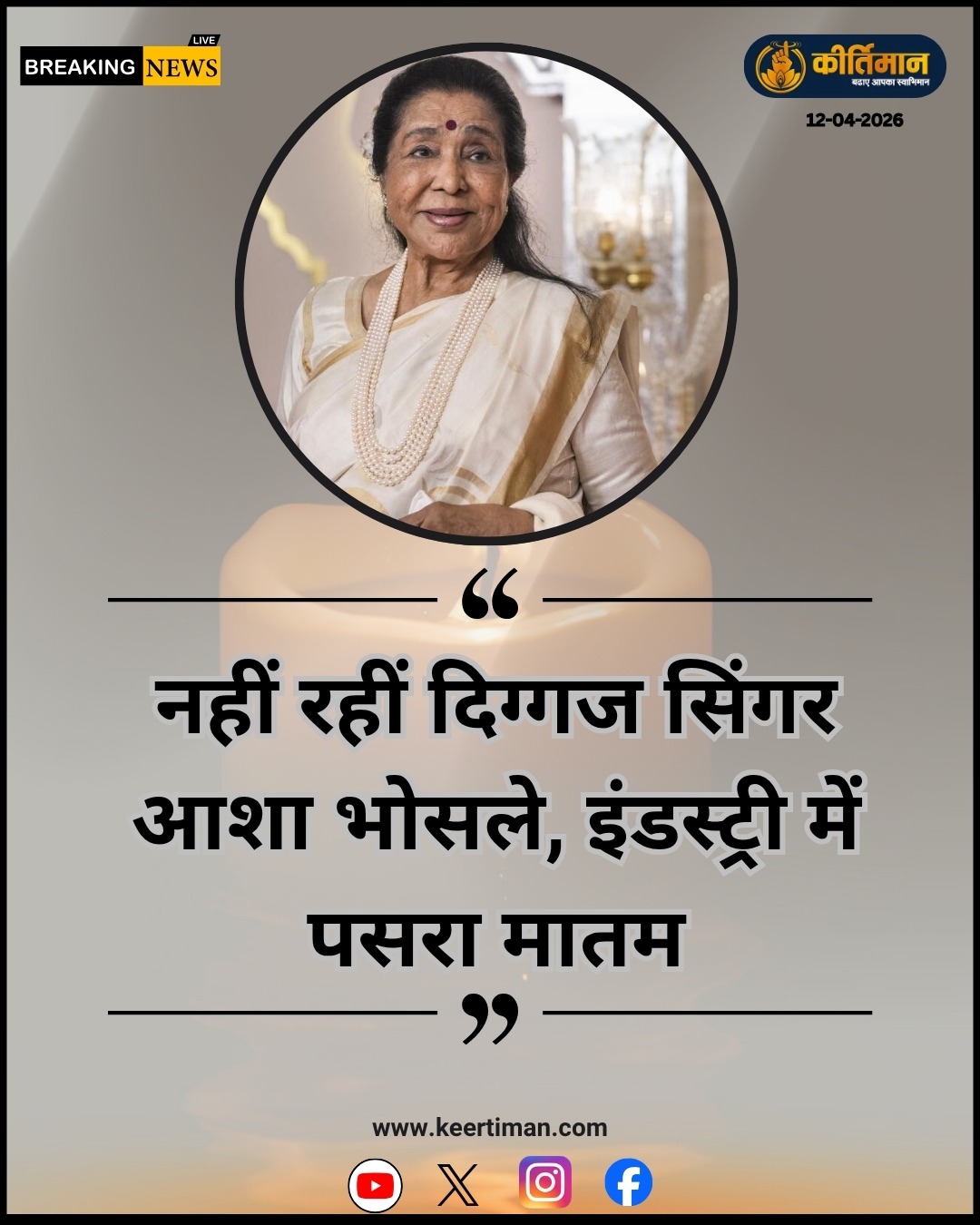नहीं रही दिग्गज सिंगर आशा भोसले, इंडस्ट्री में पसरा मातम